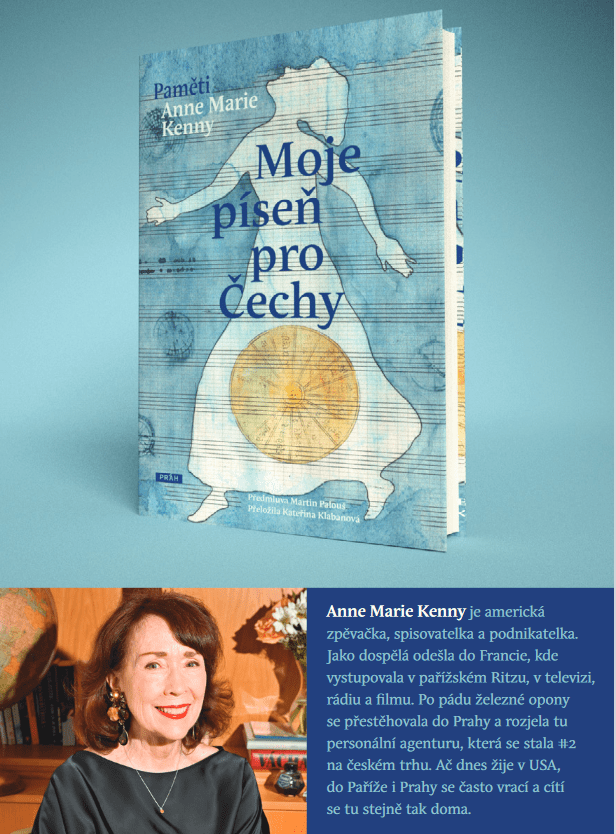 (5. 11. 2024) V těchto dnech vychází kniha americké autorky Anne-Marie Kenny s názvem Moje píseň pro Čechy (viz obrázek). Autorka v Česku prožila značnou část 90tých let a zde také podnikala. Ale nejen o tom je tato kniha. Je také o Americe, Paříži, Nice a hodně o Praze. Také musím neskromně dodat, že jsem na několika místech zmiňován.